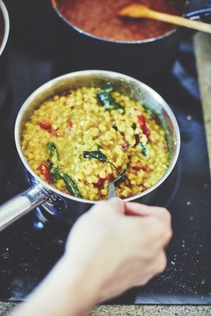 • Ajouter l’oignon haché et laisser cuire 40 à 45 min, jusqu’à ce que les pois cassés soient bien tendres.