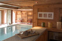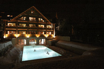 Avant de passer à table, on s’évade à l’espace bien-être afin de profiter de cette bulle de bonheur à loisir : là aussi, l’éclairage s’estompe et la chaleur augmente pour que le corps et l’esprit puissent se détendre en toute quiétude. Les glouglous de l’eau et des jets massants y aident largement. Air, bois, eau et pierre, la symbiose des éléments est parfaite. Le superbe hammam vous enveloppe d’un linceul de vapeur, et seul le ciel de luminothérapie apporte un peu de clarté dans ce lieu où l’on se prend à somnoler. Lové bien au chaud sous la mosaïque de lauze verte et rouille, vos muscles se décontractent tout entiers. Mais si on veut être un brin dynamique pour savourer le dîner, il est temps de se réveiller un peu : direction la piscine extérieure, qui permet d’enchaîner quelques brasses entre ciel étoilé et montagnes enneigées, quelques flocons vous tombant nonchalamment sur les cheveux et le bout du nez. On ne laisse rien d’autre dépasser de l’eau et on nage avec ferveur pour se réchauffer, les oreilles dans l’eau et un fond musical qui s’en réchappe agréablement. Un pur moment en suspension dans le temps.