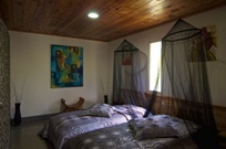 Niché dans un jardin orné de plantes endémiques, la maison de Mickaël et Raymonda peut accueillir jusqu’à douze personnes réparties dans trois suites familiales confortables et joliment décorées. Chaque chambre dispose d’un lit double et de deux lits simples, d’une salle de bain privative et d’une adorable terrasse où le petit-déjeuner vous sera servi. Amoureux de la nature et de l’isolement, sachez qu’un bungalow est actuellement en construction sur le versant d’une colline, à quelques mètres au-dessus du village. A la table d’hôtes, vous pourrez déguster de délicieux plats créoles cuisinés au feu de bois et préparés à partir des produits frais du jardin, dans une ambiance chaleureuse et conviviale. Et comme c’est de coutume à La Réunion, votre hôte ne manquera pas de vous faire goûter quelques-uns de ses rhums arrangés !