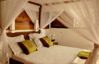 Les chambres offrent un confort plus que douillet avec leur grand lit à baldaquin auxquels les moustiquaires viennent conférer une délicieuse sensation de romantisme, les salles de bain de style tropical comprennent douche et toilettes et une petite terrasse privative permet de profiter de la vue aux meilleures heures de la journée.
