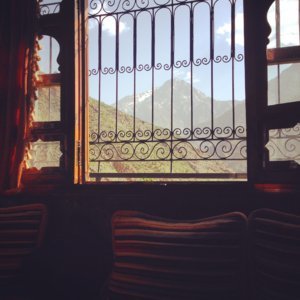 D’un côté, le gîte. De l’autre, la maison familiale d’Ahmed. Perchée sur les hauteurs d’Imlil et trempée dans un bain de verdure parmi les arganiers et autres amandiers de cette vallée, la maison a fière allure avec sa couleur vieux rose dérobée aux parois de la montagne, ses pierres bleutées incrustées en façade, ses arches orientaux qui nous rappellent que l’on est ici en Afrique du Nord...