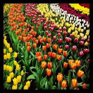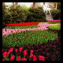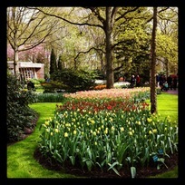 Divisé en douze espaces aménagés chacun autour d’un thème, on passe de l’un à l’autre en douceur, du jardin naturel avec ses ponts de bois, ses cascades et ses érables japonais, aux champs derrière la place du moulin, qui tracent leurs droites colorées aussi loin que l’horizon le permet. Il fait bon marcher sur l’eau au coeur du jardin Zocher, le point central du parc, réaménager son propre jardin en pensée grâce aux jardins d’inspiration, bulles douillettes et coquettes créées pour donner des idées vertes aux visiteurs, allonger la liste des variétés d’orchidées que l’on connaît déjà sous la verrière Beatrix ou se faire un concentré des espèces florales présentes dans le parc en déambulant dans le pavillon Willem-Alexander.