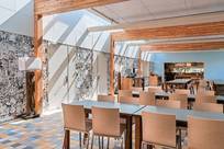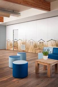 L’hôtel Stayokay d’Egmond a été réhabilité cette année avec des matériaux naturels et c’est l’espace qui prime ici, la sensation de respirer, tandis que la lumière du jour perce chacune des baies de verre. Partout, du bois clair et des peintures azur qui évoquent immanquablement le sable et la mer et viennent nous souffler un vent de bien-être.
