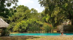 Le Saraii Village n’est pas un hôtel classique comme les autres. Bien que le prix soit élevé, ce n’est pas un 5 étoiles. Si vous détestez les insectes, ne supportez pas le chant des paons et le bruit des écureuils, l’expérience n’est pas pour vous ! L’hébergement mélange authenticité et confort selon le style architectural traditionnel sri lankais, en utilisant au maximum des matériaux naturels et recyclés comme des traverses de chemin de fer en bois ou encore des vieux poteaux électriques inutilisés. Les cabanes sont bien aménagées, ouvertes aux quatre vents, avec des salles de bain pleines de charme. Pour réduire la consommation d’énergie, il n’y a ni climatisation ni eau chaude. Les repas sont préparés avec des produits bio et locaux. Vous goûterez aux spécialités locales agrémentées de touches occidentales. La piscine naturelle traitée au sel s’intègre à merveille dans l’environnement. Cerise sur le gâteau : l’accueil souriant et chaleureux de toute l’équipe.
