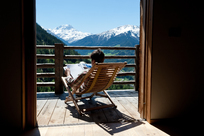 À l’intérieur des granges, sobriété et minimalisme sont de mise. Le décor se joue à l’extérieur. Ici, pas de télé, mais des grandes baies vitrées comme une fenêtre ouverte sur la montagne dans le but de valoriser le paysage.