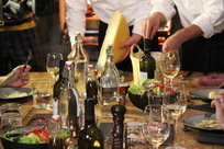 Chaque matin, le petit déjeuner est servi dans la salle-à-manger commune. Le miel vient des voisins, le café torréfié du village de Martigny, le vin du Valais et les légumes des maraîchers bio ou en agriculture raisonnée locale.