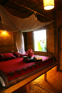 À 50 km au Nord de Chiang Mai, pénétrez dans ce havre de paix luxuriant abritant 4 vastes maisons traditionnelles, chacune équipée de 6 chambres confortables. Construites entièrement en matériaux naturels, toits de chaume et structure en bambou sur pilotis, leurs terrasses appellent à la détente dans un cadre enchanteur. Le terrain héberge à la fois une rizière et un immense potager bio, d’où viennent la plupart des ingrédients préparés en cuisine.