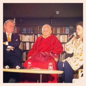 19h45 au 55 rue Sainte Anne à Paris. Samdhong Rinpoche, blotti dans son ample robe safran, vient prendre place au centre de l’estrade dressée là spécialement pour lui. Il s’excuse du petit quart d’heure de retard. Autour de lui, Sofia Stril-Rever, traductrice régulière du Dalaï Lama, auteur spécialiste du Tibet en charge de la rédaction d’une première version de cette fameuse Charte de la Responsabilité Universelle, et Bob Thurman, écrivain américain, président de la Tibet House de New York, un des 100 hommes les plus influents au monde selon le Times et d’un point de vue people, papa de la célèbre actrice Uma Thurman. Tous trois sont venus présenter en avant-première le travail qui les occupe à plein temps à l’heure où la Chine n’en finit plus de commettre d’atroces exactions envers le peuple tibétain : un texte d’engagement basé sur la conviction que ce qui nous unit est plus fort que ce qui nous divise. Un pied de nez pacifiste au gouvernement chinois dans la droite lignée de Gandhi et du Dalaï Lama.
